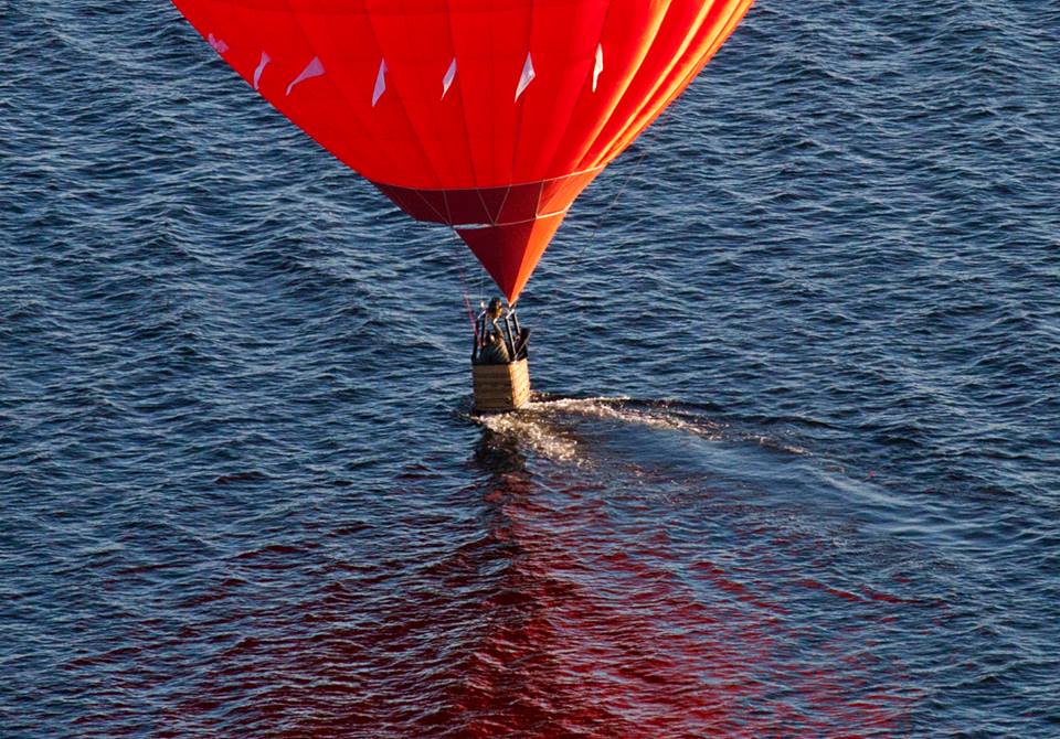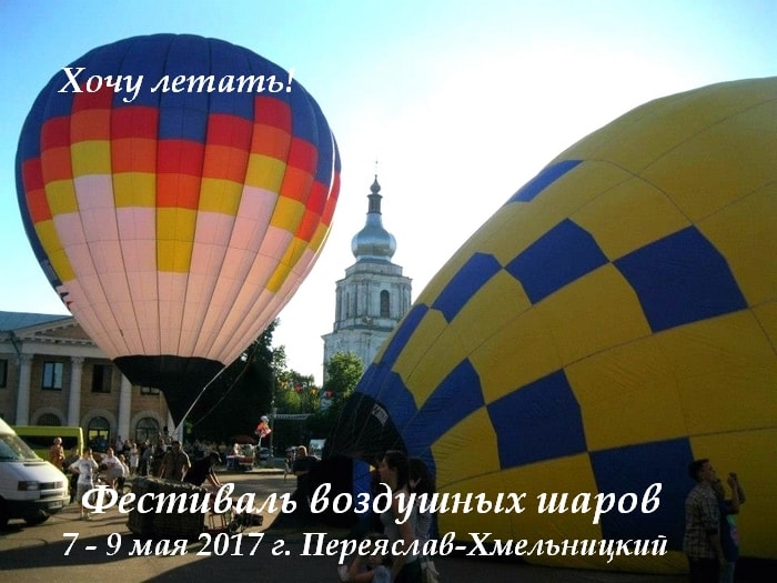 Перелет тепловых аэростатов через р. Днепр в районе г. Переяслава-Хмельницкого (левый берег), из с. Луковица Каневского района Черкасской области (правый берег). Во время перелета из гондол тепловых аэростатов на воды Днепра возлагают цветы.